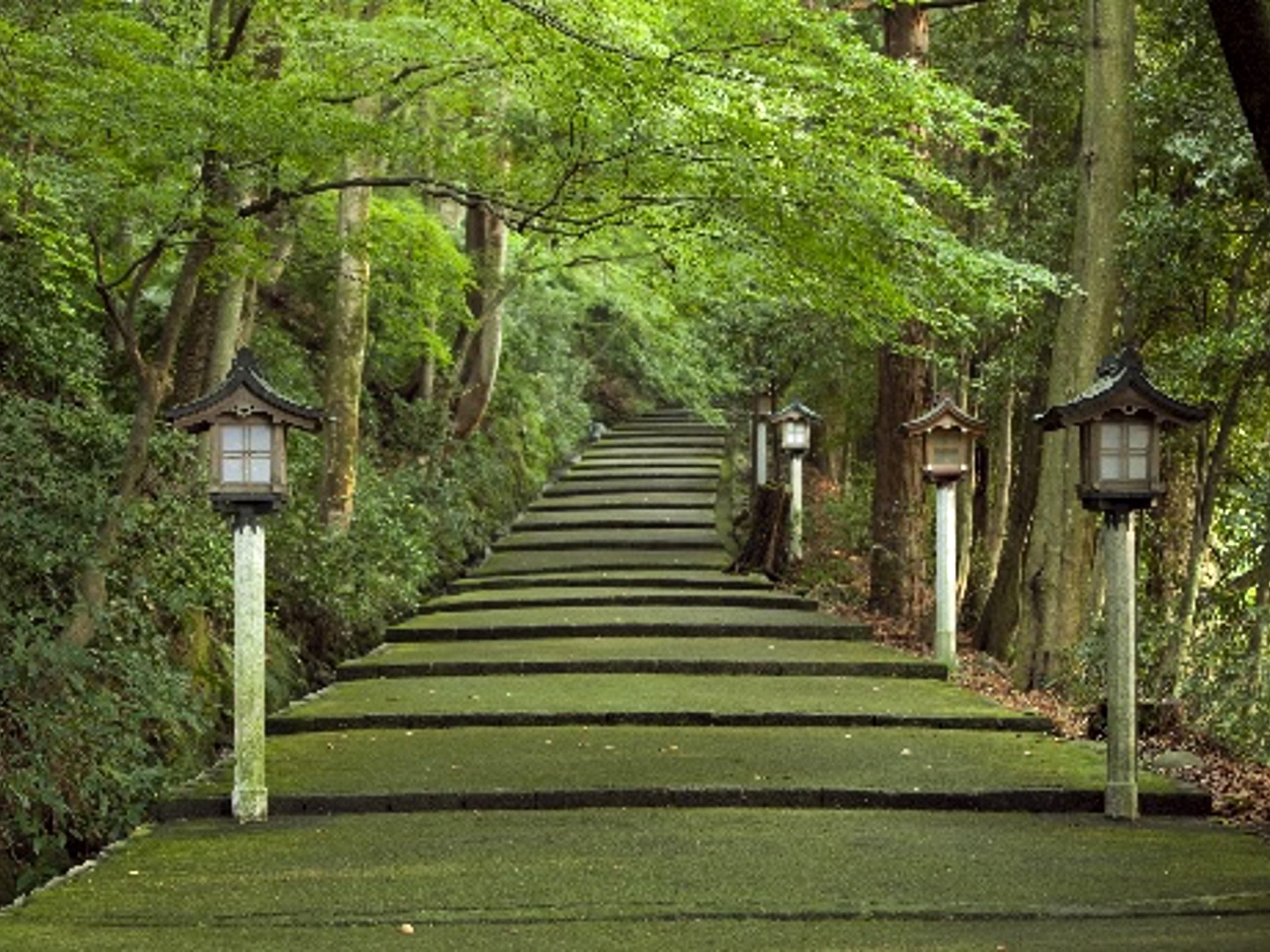 参道に立ち並ぶ杉の巨木に囲まれながら歩くだけで、心が洗われるような清々しさを体験できます。